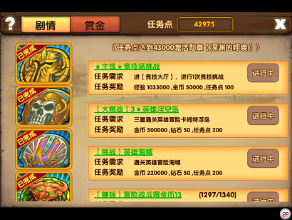3、装备进阶和升级:优先进阶五星装备, 如果没这么五星,先用4星,前期不建议装备升很高,太费资源,可以把输出的武器和肉盾的腰带,升高点。